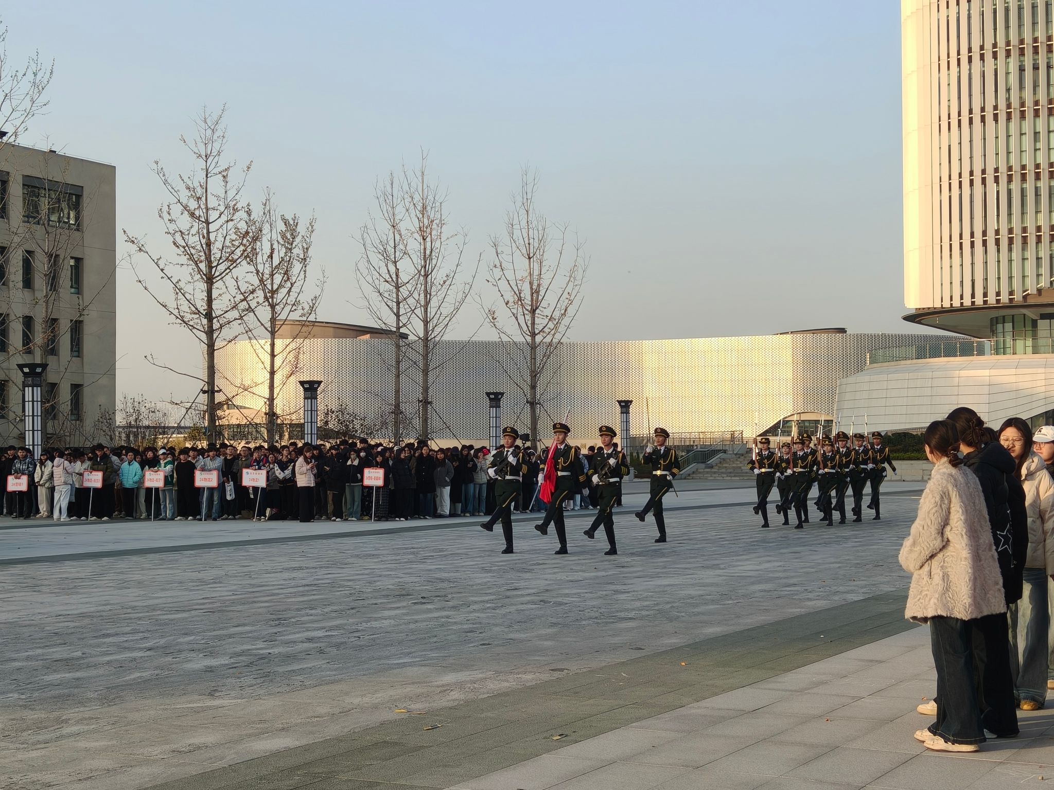 11 月 24 日,yl23411在航空港校区东广场举行升旗仪式,全院师生共同参与。