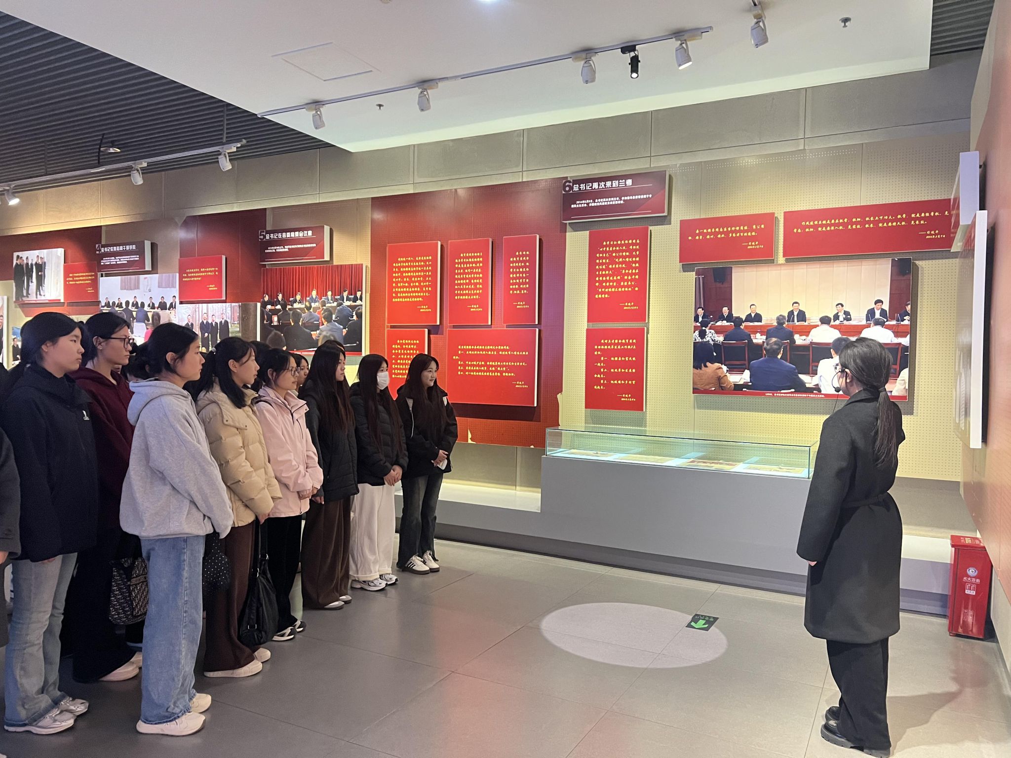 随后,大家前往兰考县展览馆,在“历史沿革”“脱贫攻坚”“乡村振兴”等展区,通过文字史料、图片展板、实物陈列、多媒体演示等多种形式,全方位探寻兰考从昔日“三害”肆虐的贫困县,到如今实现脱贫摘帽、迈向高质量发展的蝶变之路。从风沙盐碱地到绿水青山,从贫困落后到安居乐业,学子们直观感受在党的坚强领导下,兰考人民传承弘扬焦裕禄精神、艰苦奋斗铸就的辉煌成就,进一步坚定了听党话、跟党走的信念,让红色教育的意义愈发厚重。