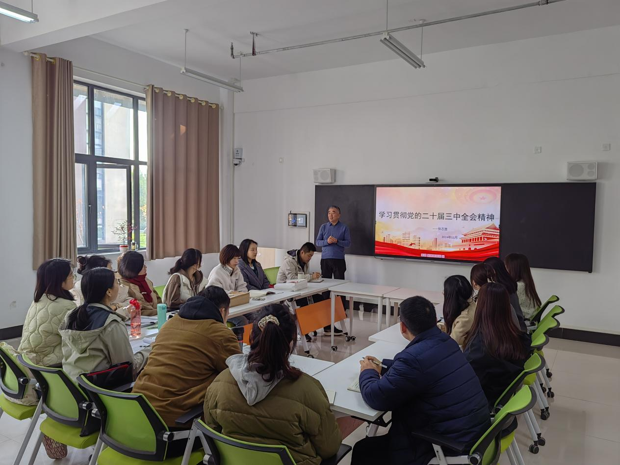 为深入学习贯彻党的二十届三中全会精神,落实好立德树人根本任务,11月21日,校纪委书记张志淮走进课堂,为经济管理系党员老师们讲授学习贯彻党的二十届三中全会精神专题思政课。