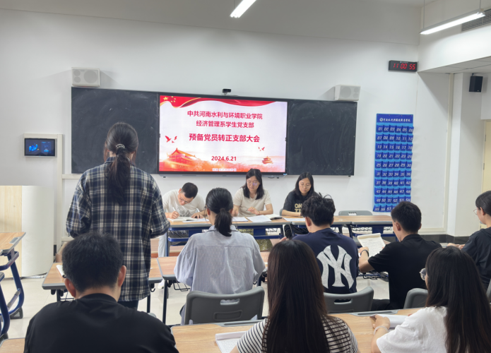 6月21日,经济管理系员工党支部召开预备党员转正支部大会。系党总支书记钟含、党支部全体党员及12名预备党员参加会议。