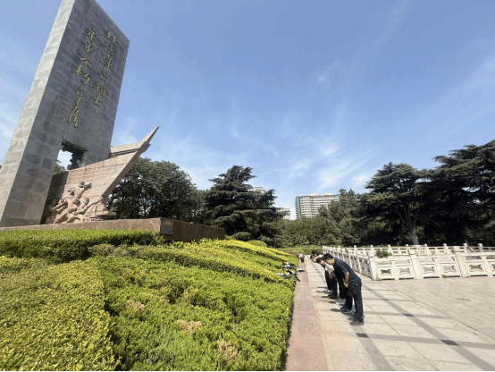 为缅怀革命先烈,传承红色精神,党员教师们来到郑州市碧沙岗公园北伐阵亡将士墓地。作为爱国主义教育基地,这里见证了无数革命先辈为民族独立、人民幸福英勇献身的崇高精神。党员教师们怀着崇敬之情,在纪念碑前敬献鲜花,深深鞠躬,以庄重的仪式表达对先烈的深切缅怀。