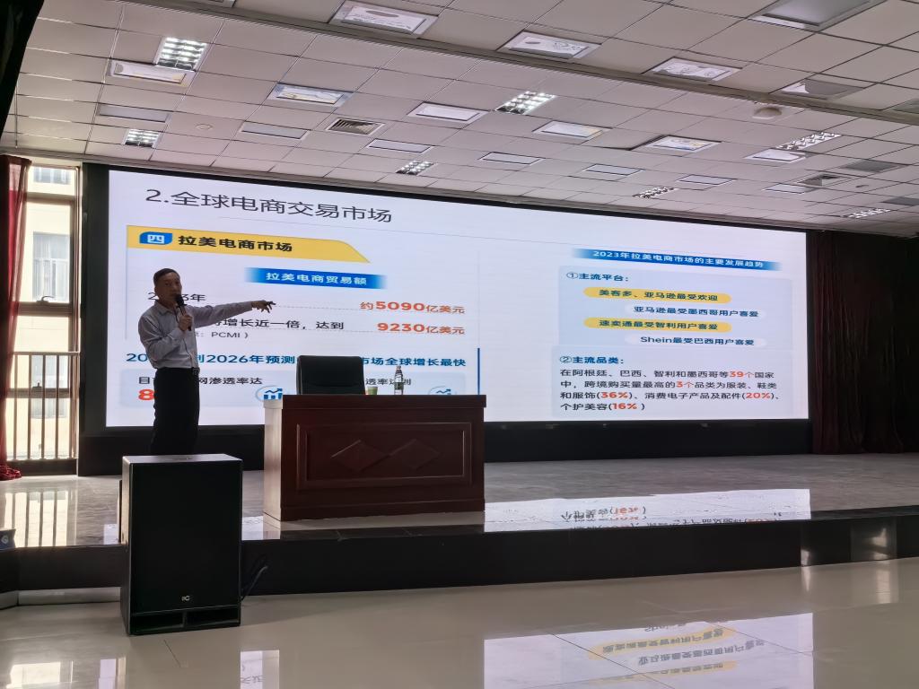 讲座上,赵亮以“跨境电商发展趋势及人才培养建议”为主题,围绕跨境电商概念、跨境电商发展现状、跨境电商发展前景、跨境电商人才培养路径四个方面,深入浅出地为在场师生描绘了跨境电商的全球市场发展、本省市场亮点、地方出台的跨境电商支持政策、品牌商运营模式等本专业热点问题,并对同学们今后的专业学习、职业规划作出了有益的建议和指导。