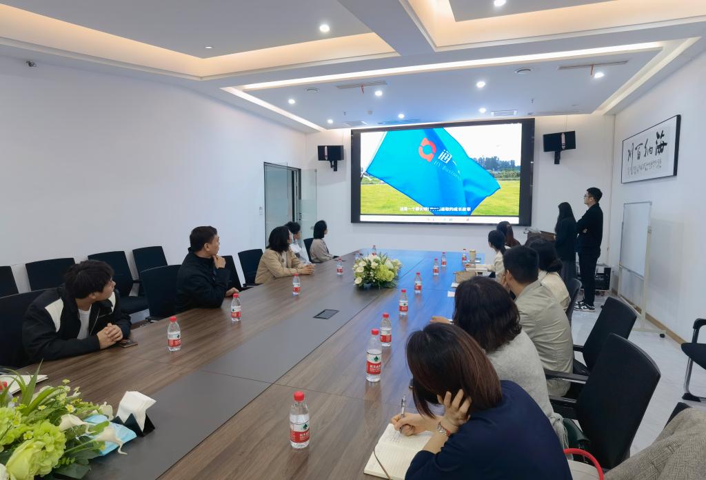 钟含一行首先参观了公司的办公场所、电商直播间、商品展厅,随后同公司总经理张俊涛举行了座谈。