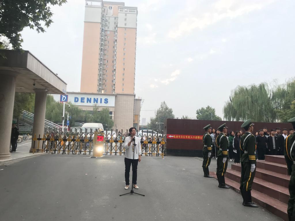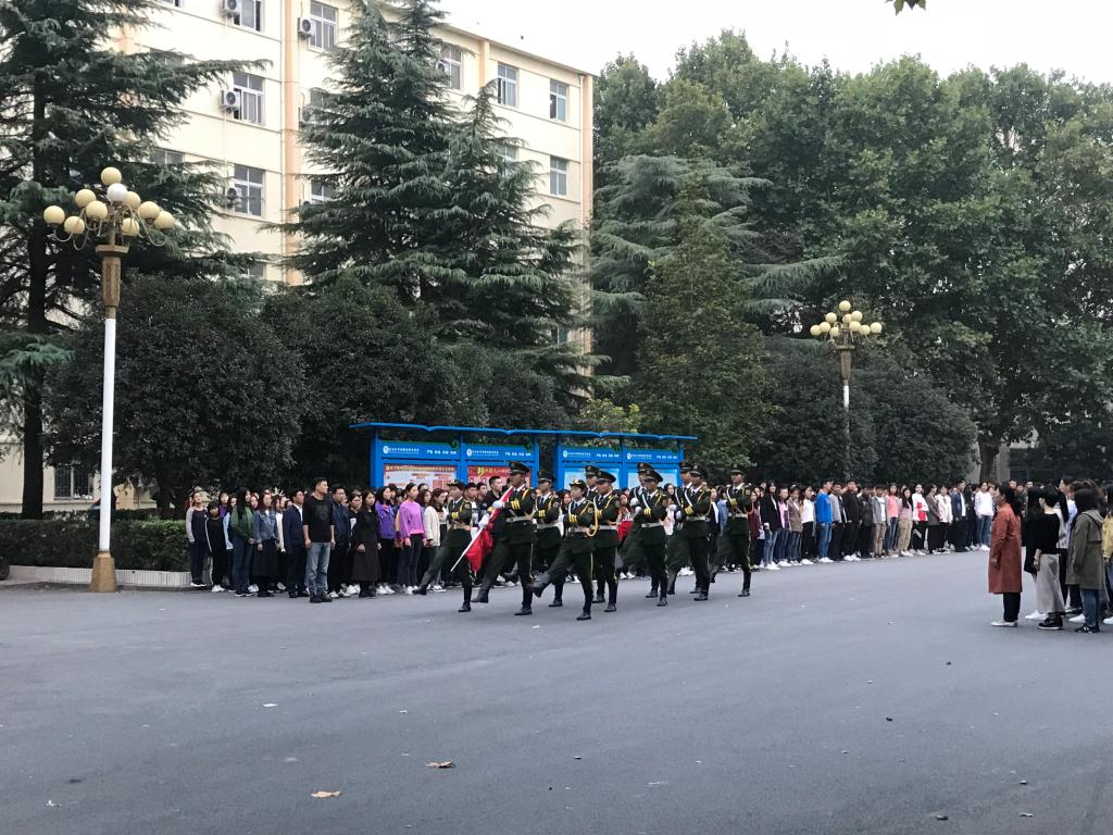 10月08日6:40,经济管理系举行本学期第一次升国旗仪式,系主任肖文珍,全体学管教师、在校员工参加仪式。