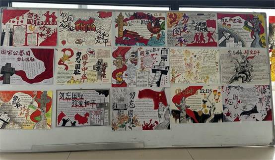 同学们积极参与手抄报制作活动,通过查找资料、整理图片和文字,精心排版设计,制作了形式多样的主题手抄报,在悲痛中传递出对和平的向往和追求。