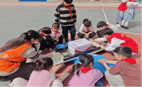在开展校内活动的同时,公司志愿者团队同步前往郑州航空港区思寸路小学,为小员工打造了一场趣味十足的“平安训练营”。考虑到小员工的认知特点,志愿者们摒弃传统说教模式,创新采用“动画演示+互动游戏”的形式,让急救知识变得生动易懂。同时结合校园常见安全问题,带领孩子们练习基础急救动作,使用教学设备模拟应急救援场景,让孩子们在实践体验中掌握基本安全技能。